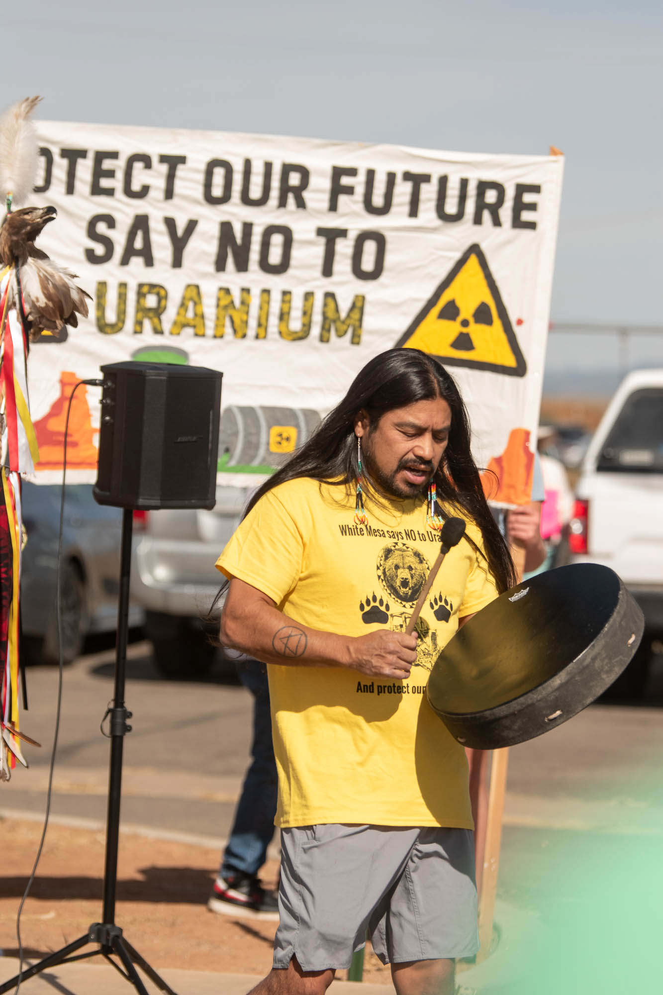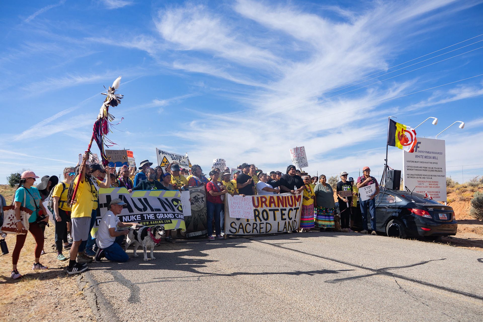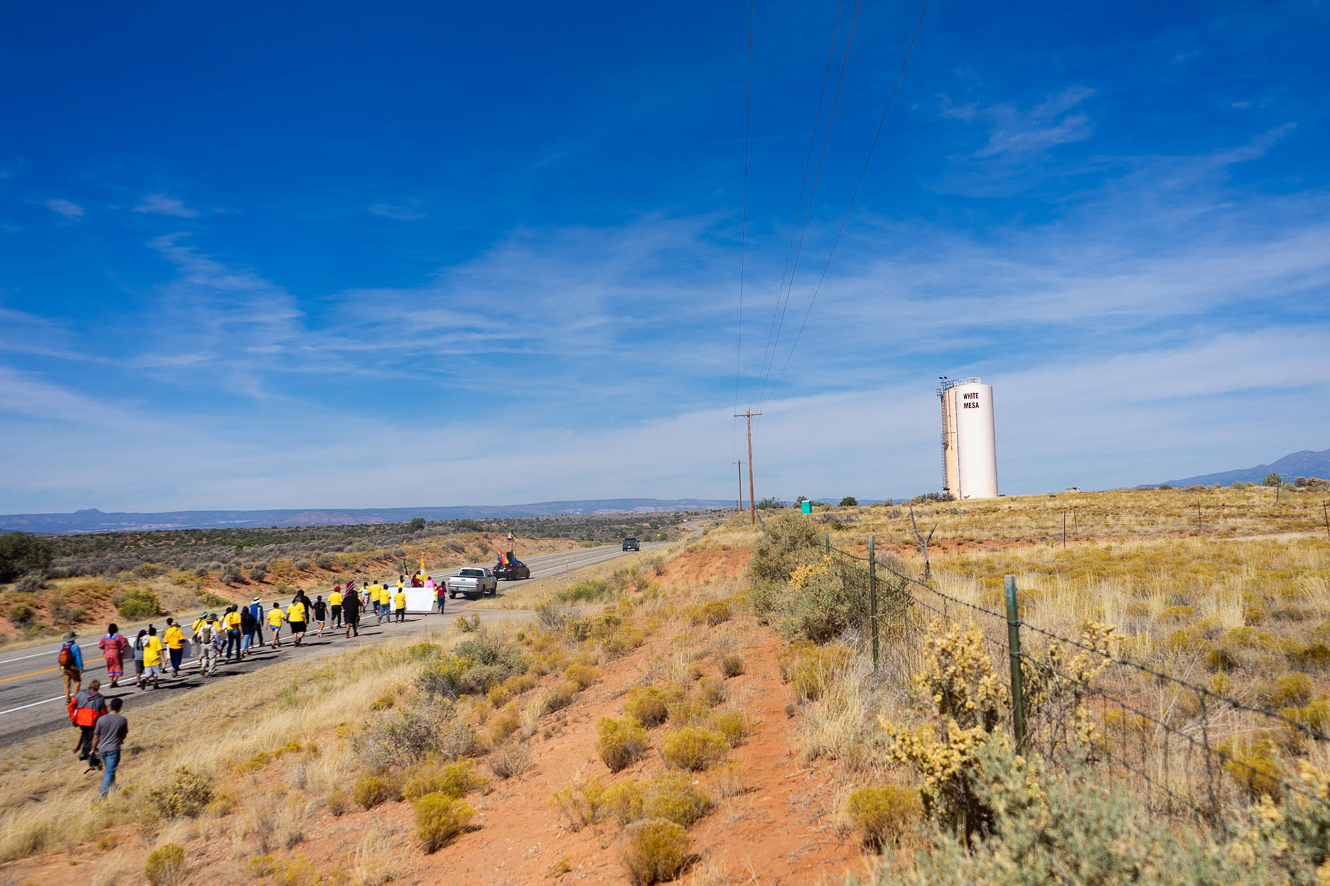 In the desert of southeast Utah, nestled between red rocks, buttes, canyons, plateaus and mesas, lies White Mesa Mill. The White Mesa Ute Community holds an annual spirit walk around Indigenous People’s Day in October to protest the mill. Participants meet at the White Mesa Community Center, then walk five miles along the side of the highway to White Mesa Mill, where they speak out against the facility’s environmental impacts.